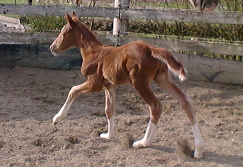 etwickeltes Stutfohlen, daß bei viel Schub aus der Hinterhand und