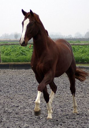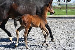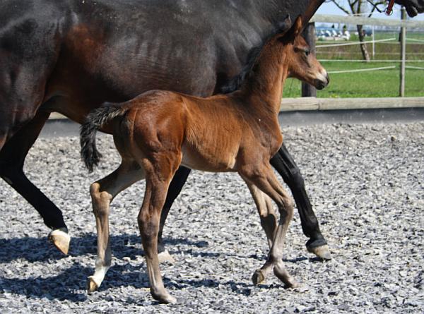 Keck und zutraulich mit einem wunderschönen Gesicht begrüßte uns der braune Hengst von Lord Leopold aus unserer Weylind (Weyden x Wenzel x Shogun xx) am 19. April . Bereits nach einer Woche zeigt er schon ganz viel Schritt und eine tolle Galoppade - eine gelungene Anpaarung.