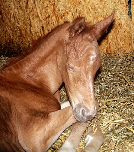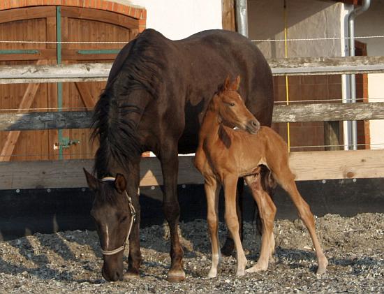 Ganz niedlich, ohne viel Abzeichen und auch ein paar Tage zu früh, erblickt die kleine braune Tochter des Hot Spirit aus der St.Pr.St. Weltlicht am 23. März um 7:30 Uhr das Licht der Welt (was für ein nettes Wortspiel).