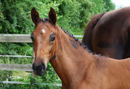 Schick, sensibel und und ganz propper kam der Dunkelfuchs von Don Diamond aus unserer Hengstmutter Comtess Corlana aus der Aufzucht von Karl-Heinz Bauer in Schrozberg zurück. Nicht nur sein Äußeres hat uns gefallen auch sein Interieur und sein sehr energischer Bewegungsablauf hat uns beeindruckt. Wir sind sehr gespannt auf das nächste Jahr, wie er sich unter dem Reiter zu bewegen weiß. Alle seine Geschwister sind im Sport erfolgreich.
