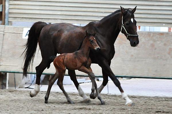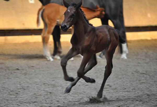 Beide Hengstfohlen auf unserer Zucht haben ein neues zu Hause. Bei unserem wunderschönen Johnson-Sohn aus der St.Pr.St. Comtess Ferrara ging der Zuschlag auf der Eliteauktion an Frieder Heilemann und Matthias Schepper. Sein Werdegang wurde von Matthias schon kommentiert: "Wenn er gesund bleibt, seht Ihr Ihn 2014 auf der Körung!".
