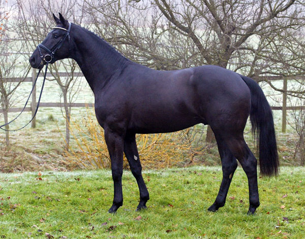 Katrin Burger (Stellvertretende Zuchtleiterin in Oldenburg) sicherte sich First Kiss. 3-jährig wurde er 2. Reservesieger bei der Süddeutschen Körung in München. Der lackschwarze Youngster konnte sich 3 und
